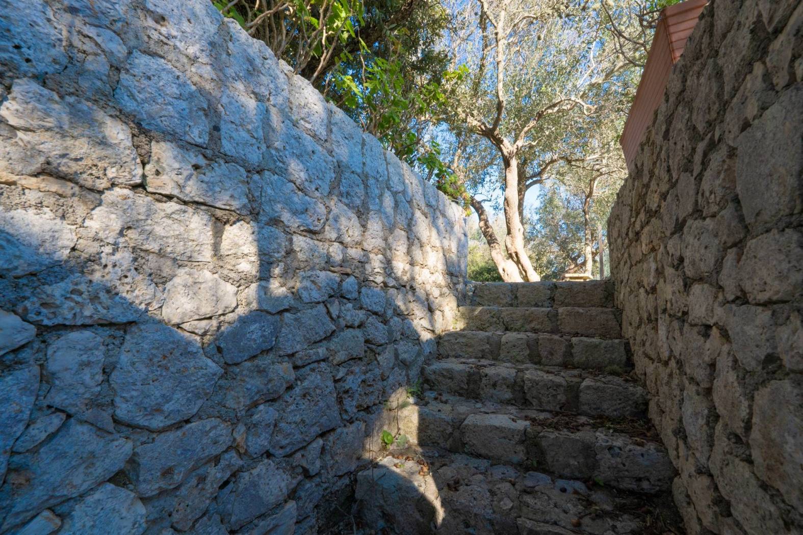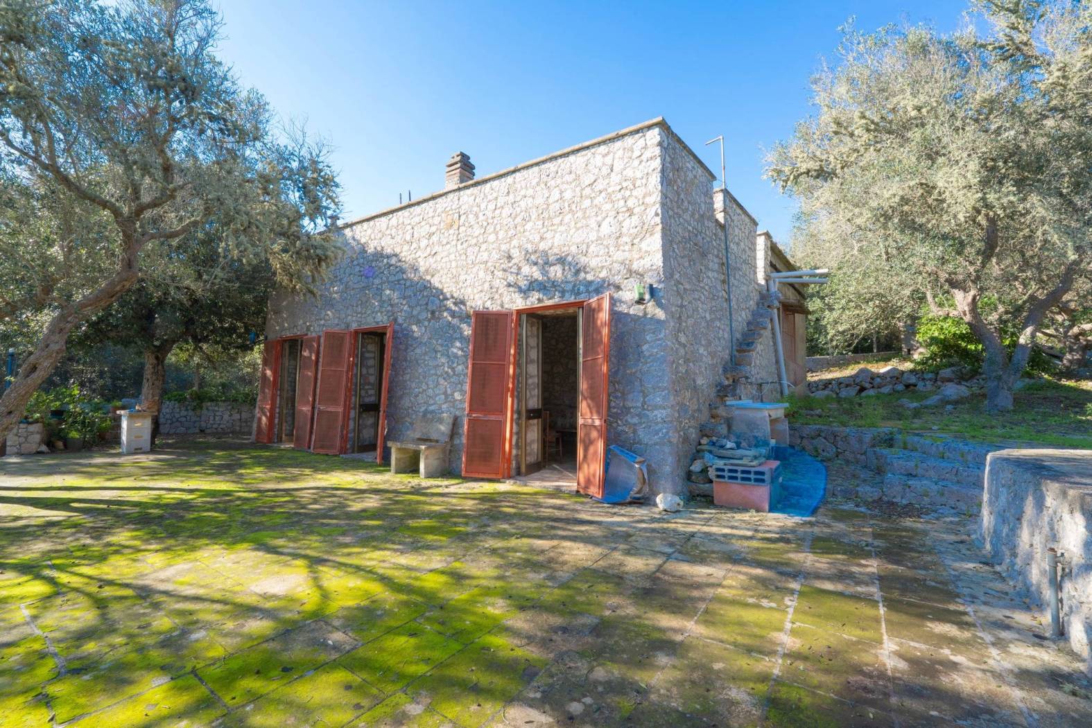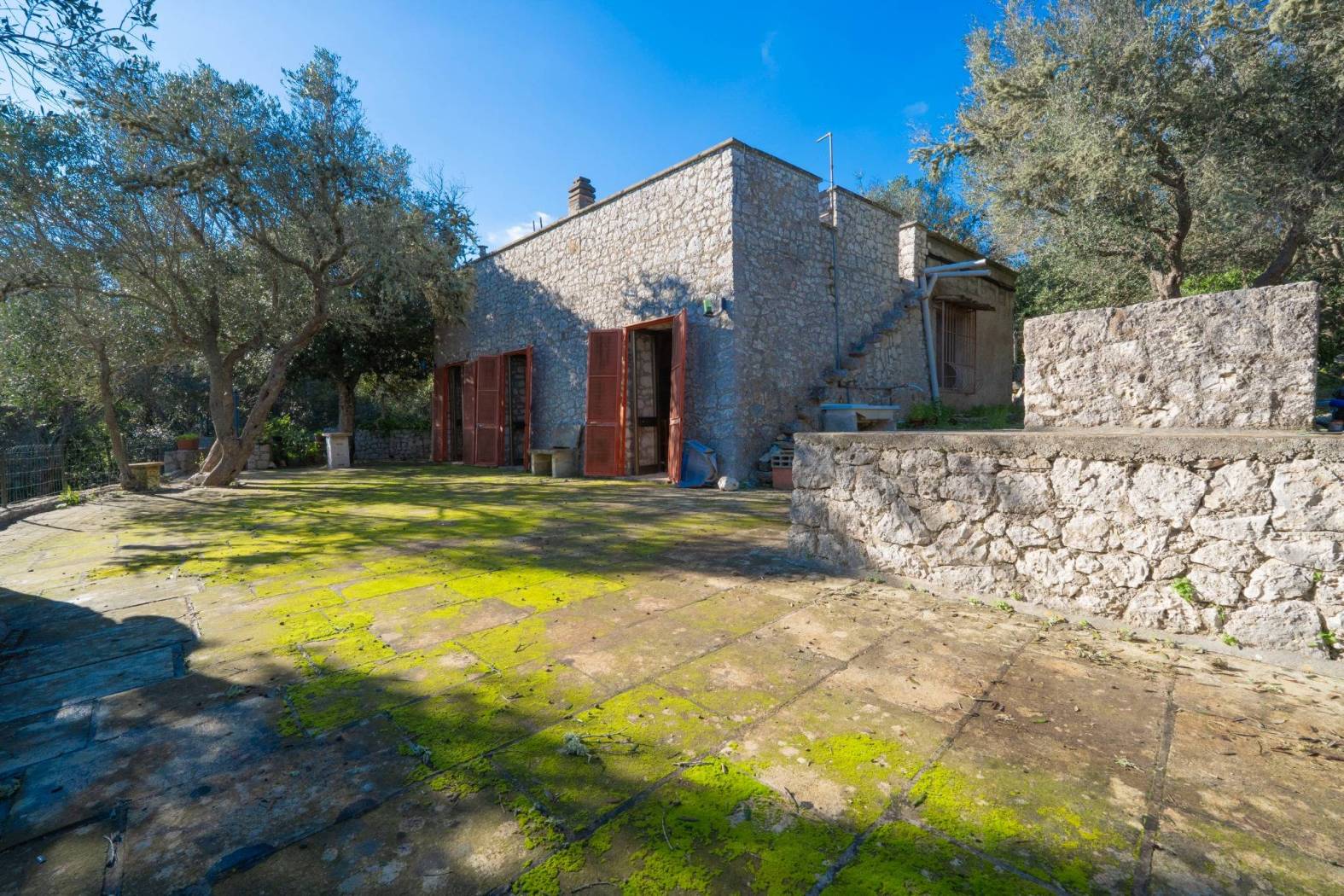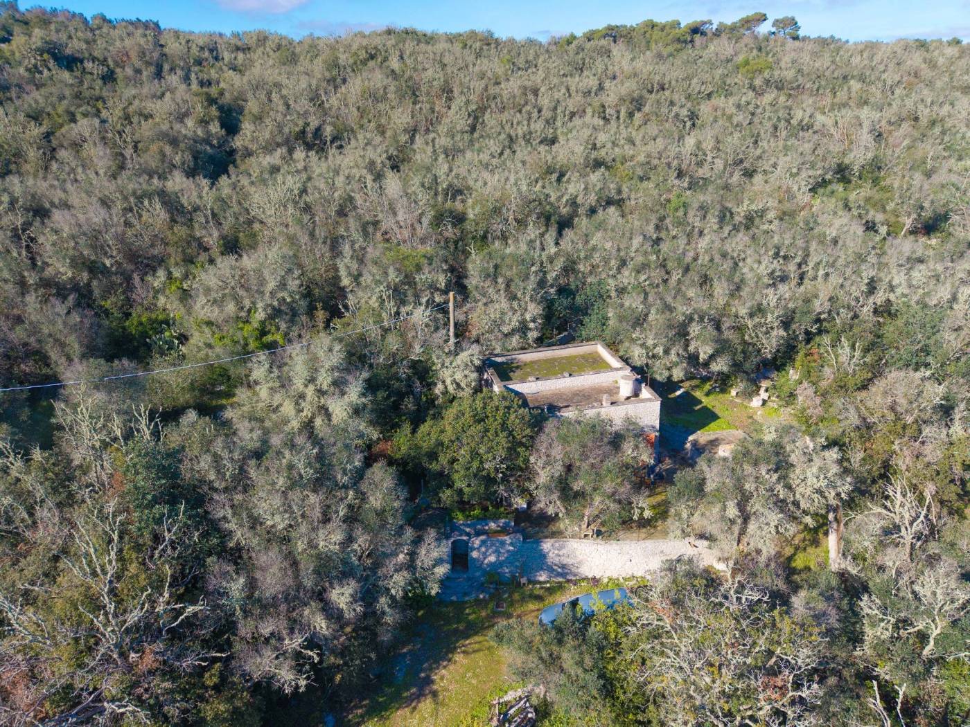 La proprietà è circondata da un uliveto esclusivo di circa 7.000 mq, che garantisce riservatezza totale e un'atmosfera autentica e senza tempo. La struttura, realizzata interamente in pietra, presenta mura perimetrali di circa un metro di spessore, simbolo di solidità, comfort e pregio costruttivo.